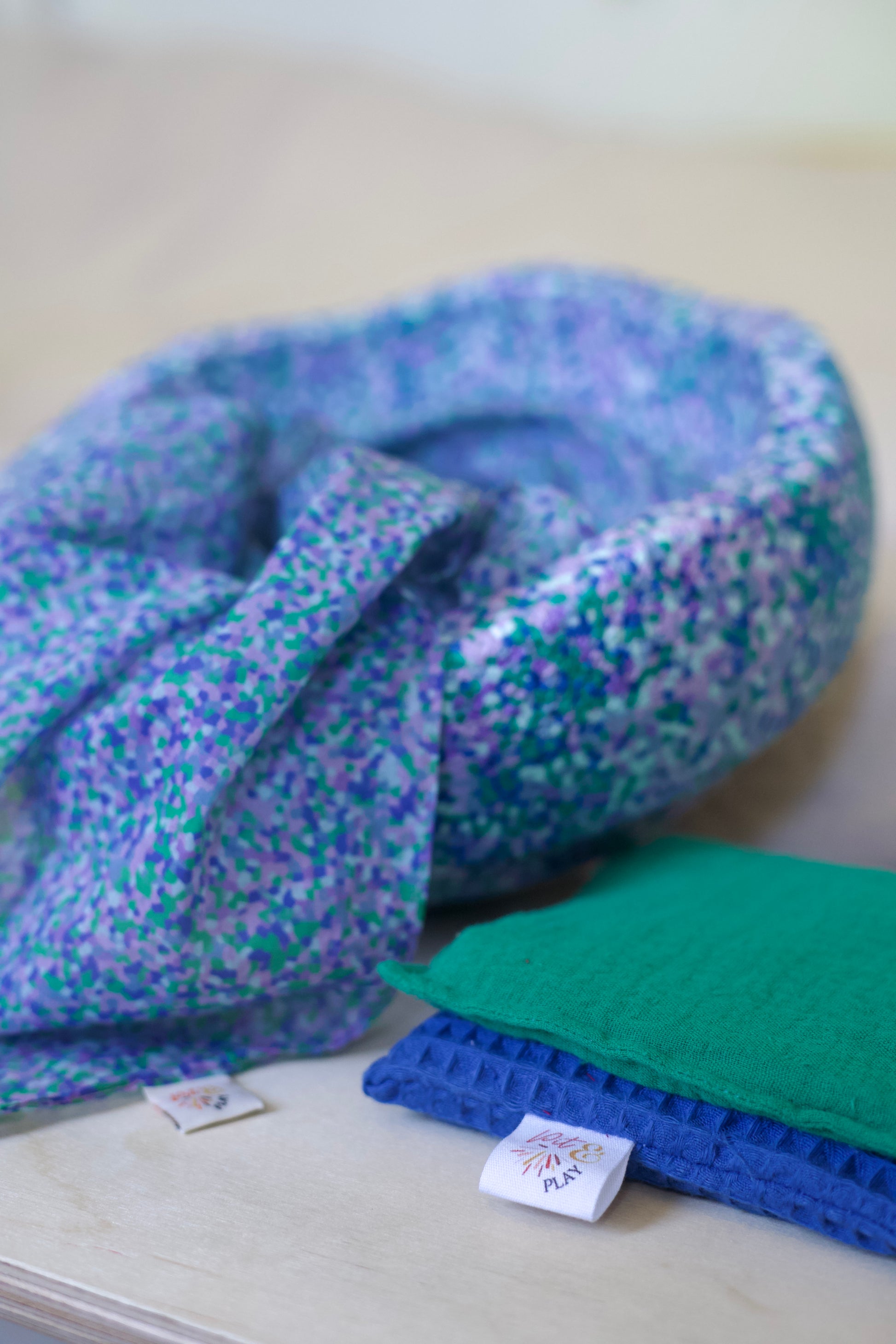 Op zoek naar een kraamcadeau dat écht bijzonder is? Deze set met 2 pittenzakjes en een medium katoenen speeldoek (48x48cm) is persoonlijk, duurzaam en handgemaakt. Niet zomaar speelgoed, maar een geschenk dat kinderen jarenlang plezier geeft, vanaf de allereerste momenten tot wel 8 jaar oud.