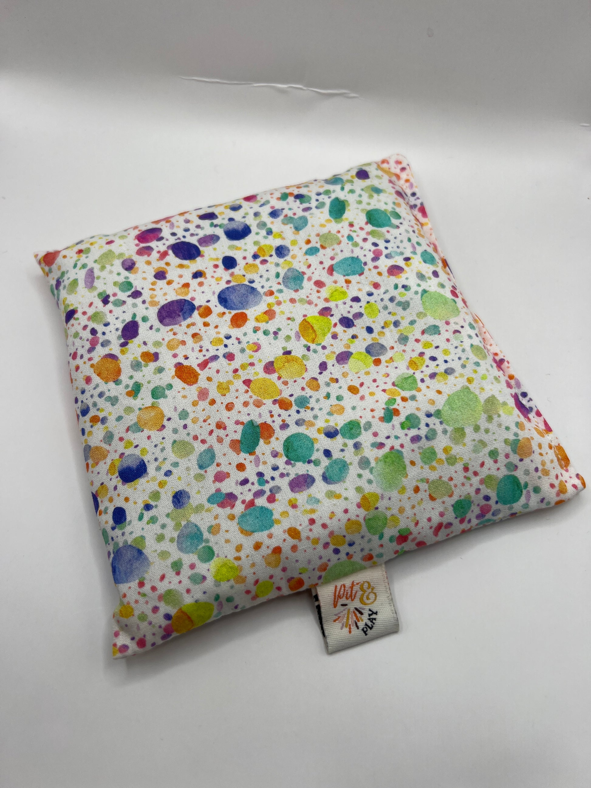 De pittenzakjes van Pit and Play voldoen aan alle Europese richtlijnen voor veilig speelgoed (CE-markering). Ze zijn met de handgemaakt en ongeveer 14cm bij 14cm. Gevuld met +/-130 gram zuivere kersenpitten (dat rinkelt zo lekker).