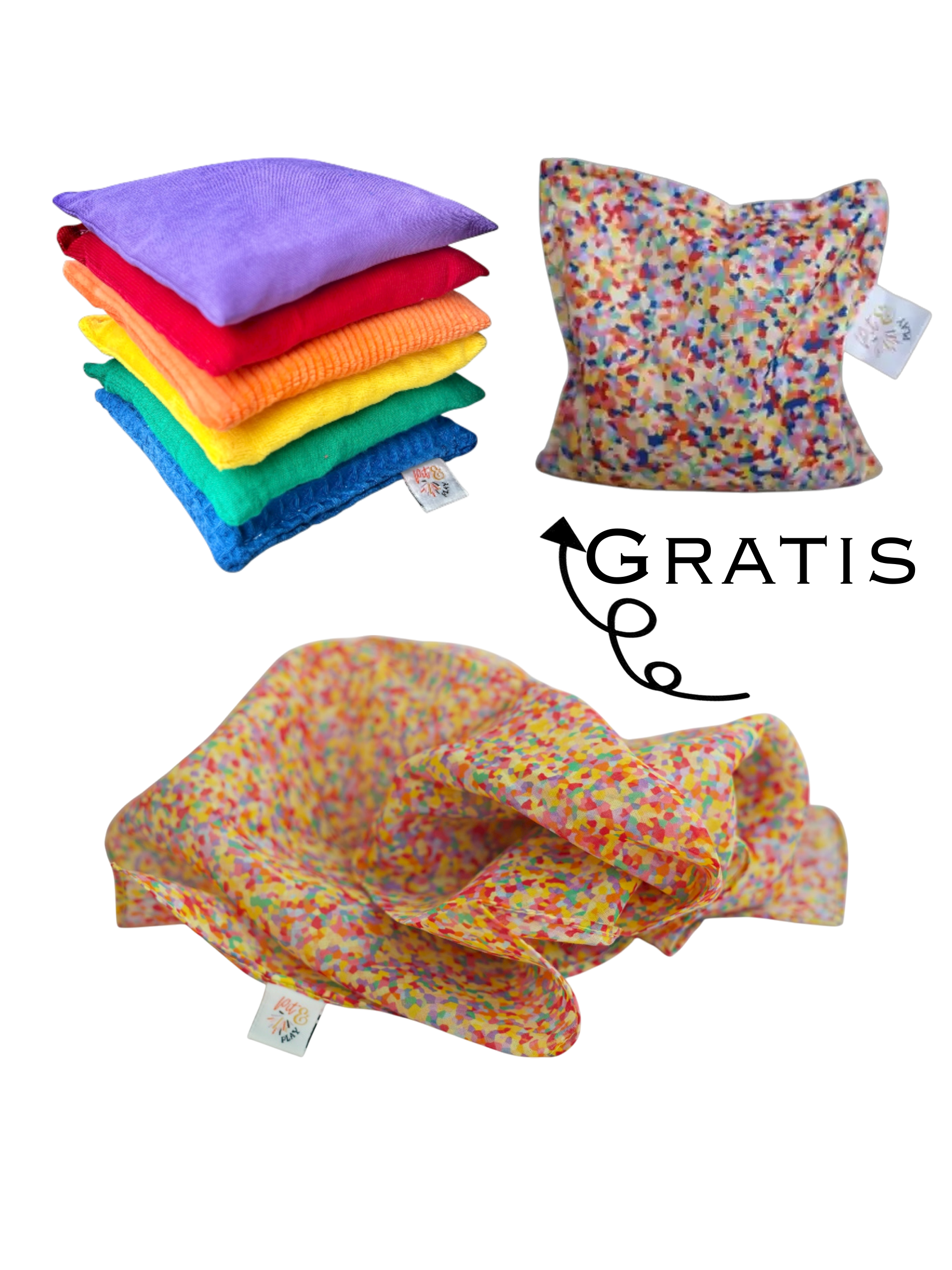 - Past in de categorieën speeldoek, playsilk, playcotton, playscarf en speelsjaal